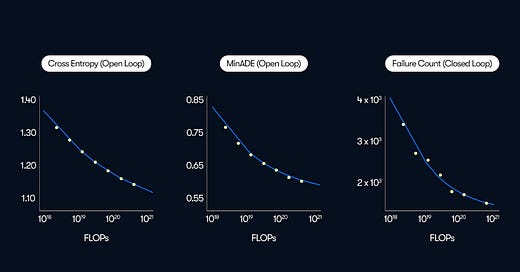 Waymo shows their objective scales with compute budget in a similar fashion to LLMs.